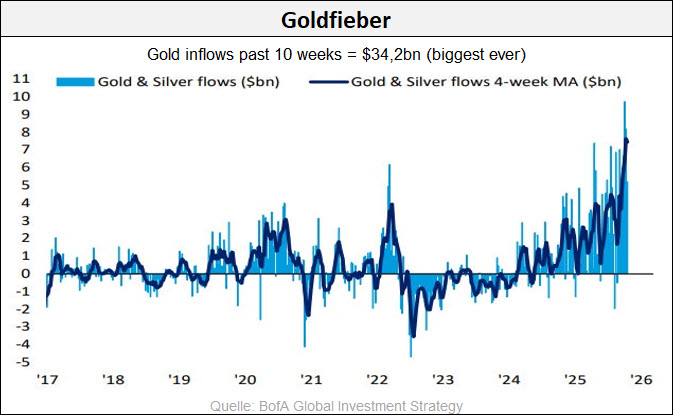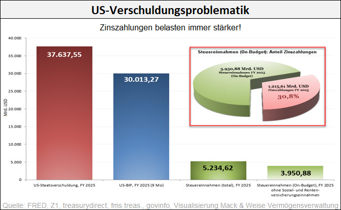 Im Oktober erreichten Gold und Silber neue historische Höchststände, wobei auch der mit immer neuen AISC-Margin-Rekorden aufwartende Edelmetallminensektor seine im Jahr 2011 erzielten Höchststände – wenn auch nur knapp – überwinden konnte. Bemerkenswert an den letzten deutlichen Kursbewegungen war sicherlich, dass diese weltweit von einem breiten Medienecho begleitet bzw. getrieben wurden, so dass die wesentlichen Argumente für Edelmetallkäufe (z. B. nicht nachlassende Goldkäufe der (BRICS-)Notenbanken, Angebotsdefizit im Silbermarkt, physische Engpässe im Edelmetallhandel, sinkende US-Leitzinsen trotz 3-%-p. a.-Teuerung!) für eine immer stärker spekulativ getriebene Nachfrage sorgten. Da aber auch noch viele andere Kaufargumente die Runde machten, die an den Edelmetallmärkten in der Regel nur kurzfristig für Ausschläge sorgen (z. B. geopolitische Konflikte, der zwischen den USA und China wieder aufgeflammte Handelsstreit oder gar der US-Government-Shutdown) war die Ende Oktober an den Edelmetallmärkten einsetzende scharfe Korrektur markttechnisch auch keine große Überraschung. Wir gehen davon aus, dass aus dieser Gemengelage eine durchaus volatile, aber letztlich auch nur gesunde Konsolidierung/Korrektur resultieren wird, zumal ja auch noch die von den Märkten bislang klar erwartete Dezember-Zinssenkung vom Fed-Chef Powell erst jüngst infrage gestellt wurde. Ungeachtet dessen bleibt der langfristige Ausblick für den Edelmetallsektor nach unserer Einschätzung ungebrochen positiv, lieferte doch Powell auf der Oktober-Pressekonferenz ja höchstpersönlich das entscheidende Kaufargument für Edelmetalle. So wurde er nicht müde zu betonen, in welche geldpolitische Zwickmühle die Fed inzwischen geraten ist, würde doch der schwächelnde Arbeitsmarkt einerseits eine lockere Geldpolitik verlangen, während die (seit April) wieder anziehenden Teuerungsraten wiederum eine restriktive Geldpolitik erforderten. Angesichts der – allerdings von Powell nicht thematisierten – stabilitätsgefährdenden US-Verschuldungsspielstände liegt es auf der Hand, dass sich die Fed früher oder später ohnehin gezwungen sehen wird, ihre Inflationspolitik wieder zu beschleunigen.